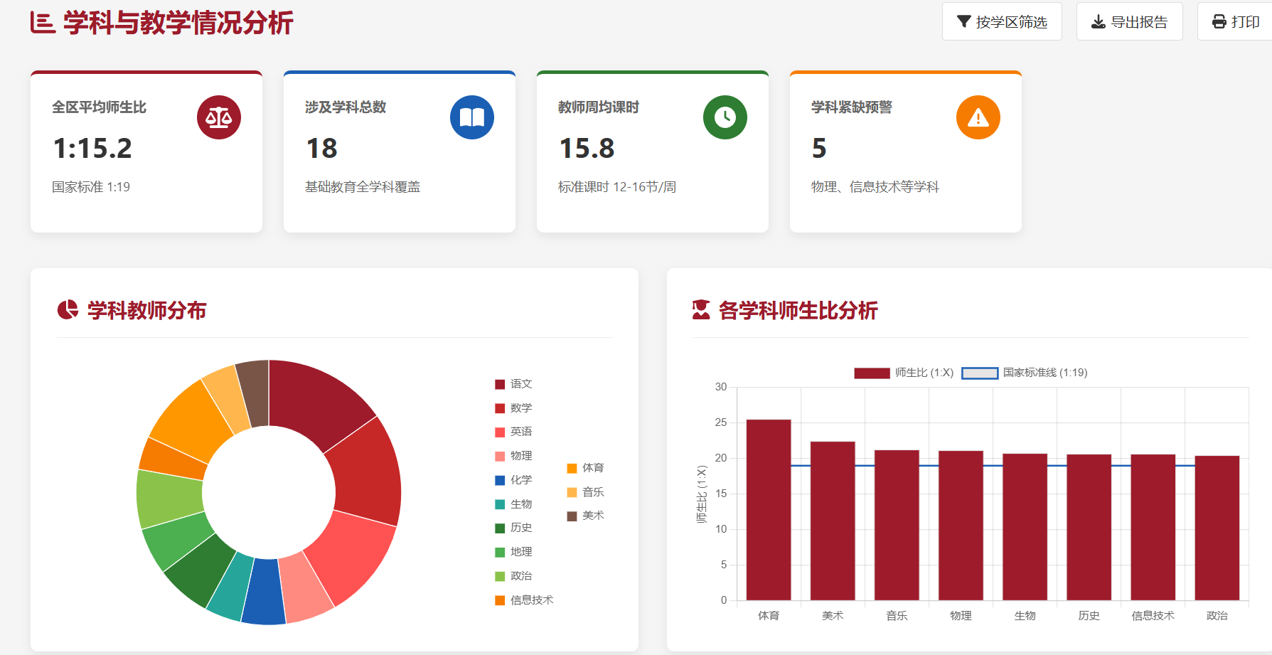 l按学校、学科、年级多维度实时计算师生比